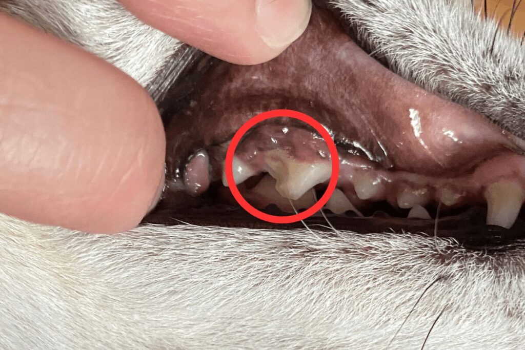 子犬の頃、ちょうどにおいが出ているあたりに、乳歯が残ったまま永久歯が生えていた記憶がありました。